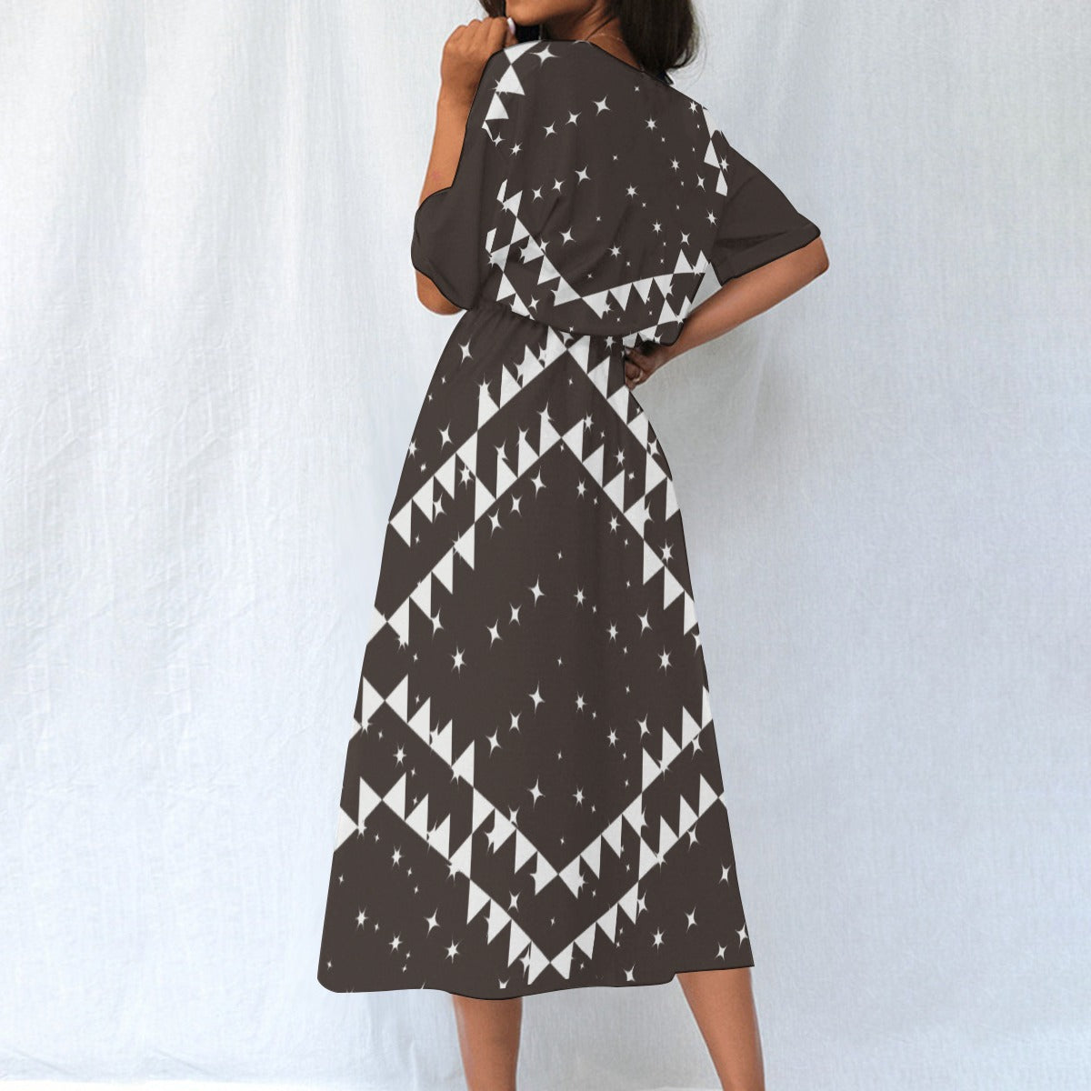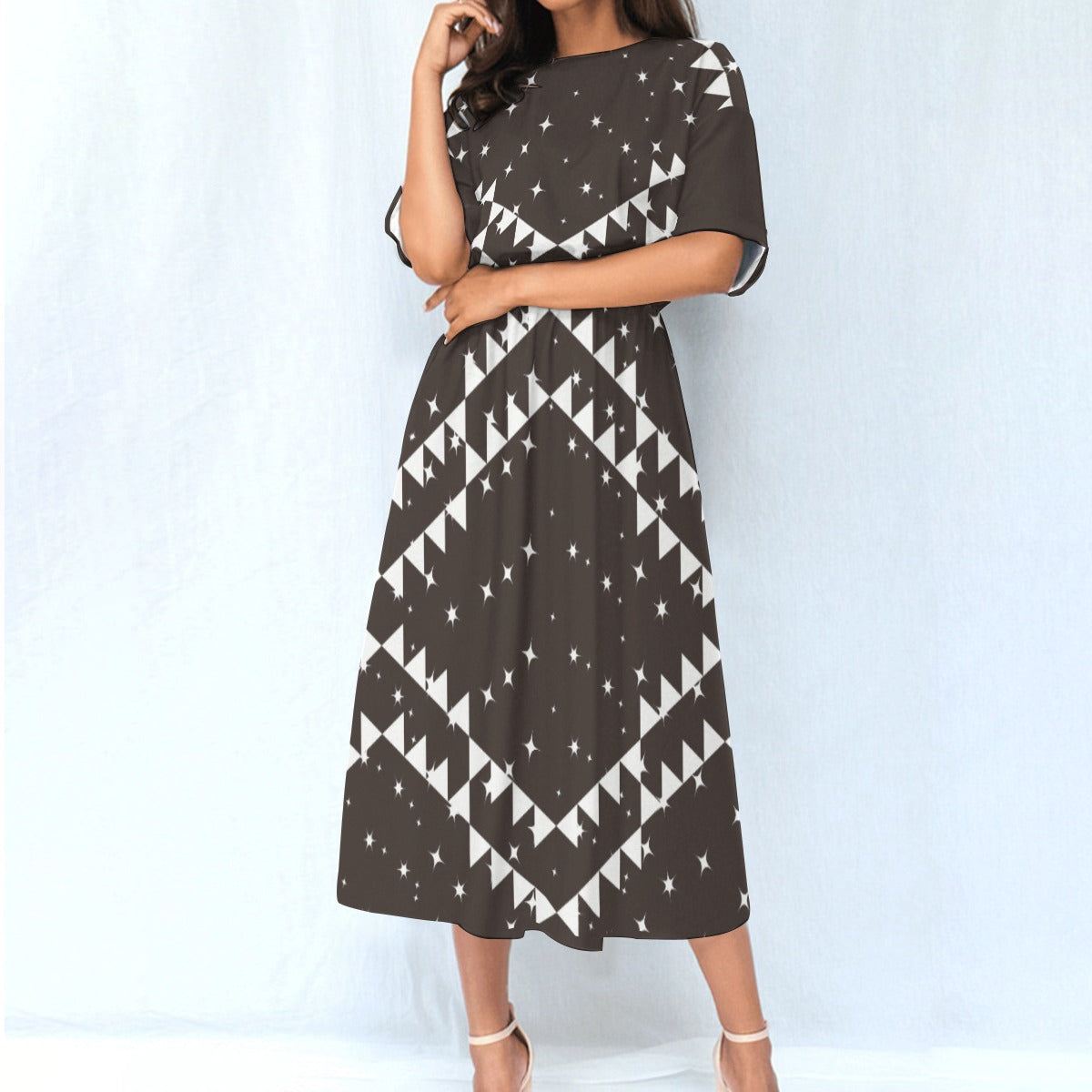 This classic round-neck, knee-length dress is crafted from soft, breathable fabric, perfect for any occasion.